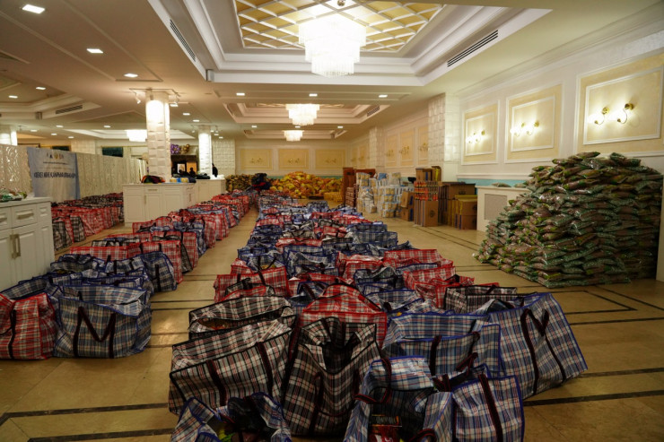 В раздаче продуктовых наборов посильную помощь оказывает ДУМК, волонтеры и неравнодушные горожане. Расфасовка продуктовых корзин производилась в мечети Хазрет Султан, откуда и стартовала погрузка и развозка нуждающимся семьям по 4 районам столицы.