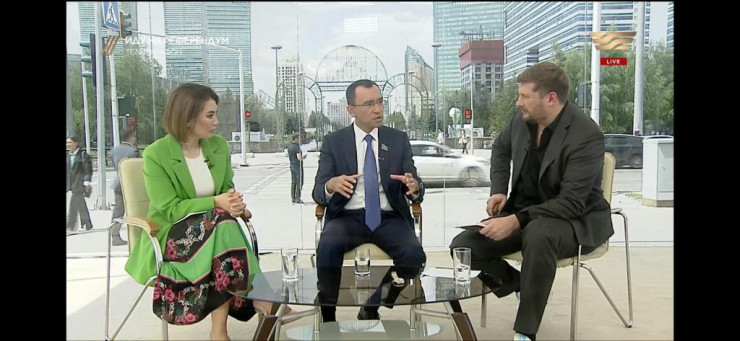 Первым гостем открытой студии стал председатель Мажилиса Ерлан Кошанов. Он отметил важность предстоящего референдума.