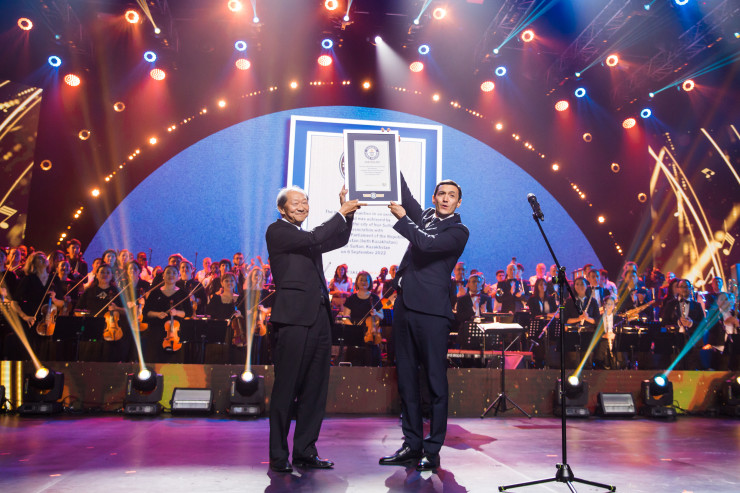 В столице Казахстана, во Дворце мира и согласия, 6 сентября зафиксирован новый мировой рекорд: на одной сцене собрался самый многонациональный музыкальный коллектив – 75 национальностей из 51 страны, передает Tengrinews.kz.