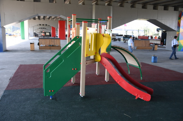 Здесь же построена открытая спортивная площадка. В целом в Алатауском районе будут созданы 24 игровые, спортивные зоны и локальные общественные пространства по проекту "Бюджет участия".