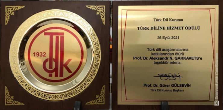 В 2017 году почетную награду "За служение турецкому языку" из рук Президента Турецкой Республики Реджепа Тайипа Эрдогана получила профессор КазНПУ имени Абая Гульбану Сейлбеккызы Косымова. В 2021 году турецкая сторона поручила вручить ее выдающемуся тюркологу Александру Николаевичу Гаркавцу, лауреату многих отечественных и международных премий и наград.