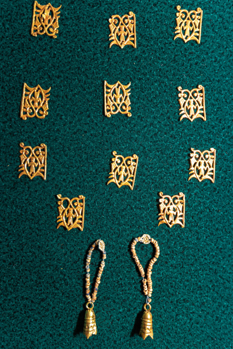 Все найденные изделия выполнены в зверином стиле. По технологии изготовления, материалам, формам и сюжетам золотые украшения, предварительно, также датируются V-IV веками до нашей эры и являются памятниками искусства саков Тарбагатая.