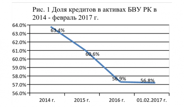 С другой стороны, если посмотреть на выдачу кредитов юридическим лицам, которые используют данные средства с большим мультипликативным эффектом для экономики, то ситуация складывается несколько иная. Выдачи за январь-февраль сократились на 7,2 процента. В целом очевидно, что кредитование для отечественных банков становится все менее привлекательным и возможным бизнесом. За последние три года доля кредитов в активах банков устойчиво снижается (рисунок 1).