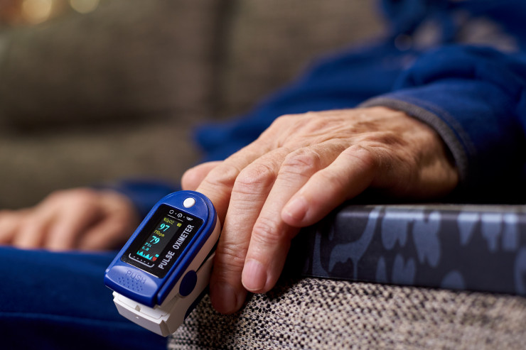 Достаточно простым способом слежения за уровнем кислорода в крови является пользование пульсоксиметром. Это небольшое электронное устройство, которое надевается на указательный палец. Нормальный уровень кислорода в крови - выше 96 процентов. Если он падает ниже 92 процентов, то это обычно требует медицинского вмешательства.
