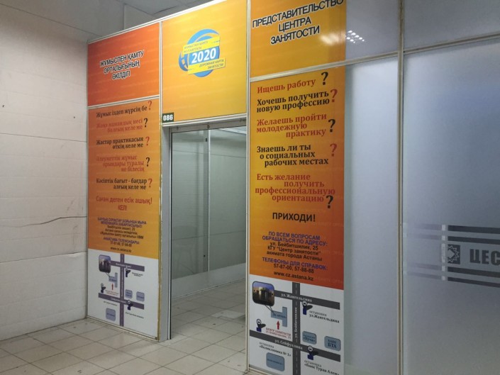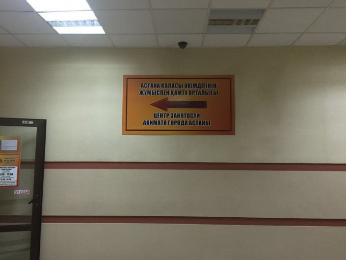 Для чистоты эксперимента я представилась офис-менеджером частной компании, которая ищет другую работу. Обратилась в ближайшее представительство, находящееся в здании рынка "Астаналык". Сразу скажу, филиал пришлось искать долго. В "Артеме" нет ни указательных ссылок, ни баннера с объявлением о Центре занятости. Администрация рынка, к сожалению, также не владеет информацией. После неудачных поисков по шести этажам здания,  решилась позвонить в Центр занятости и уточнить номер офиса. Почему я сразу не позвонила, наверное, спросите вы. Во-первых, не каждый соискатель знает телефон Центра занятости. Во-вторых, многие люди предпочтут сразу прийти в офис, а не звонить и спрашивать, где, что и как, в особенности старшее поколение. Поэтому все должно быть просто и понятно.