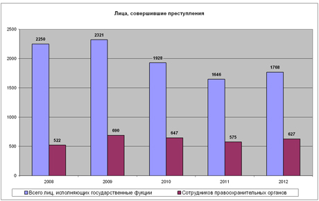 2. Количество совершивших преступления сотрудников правоохранительных органов остается стабильным - на уровне 600 человек;