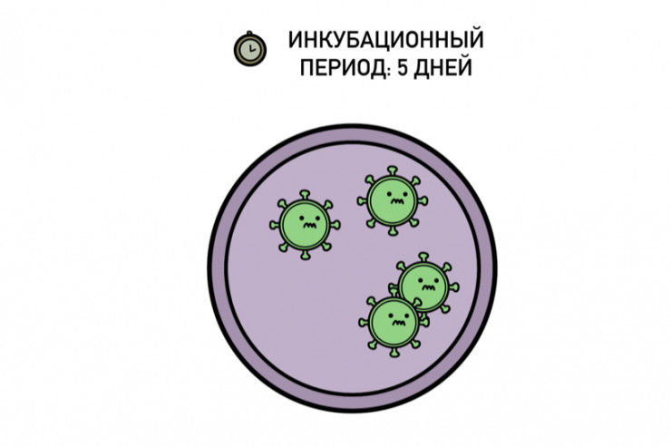 Время с момента заражения до появления симптомов COVID-19 называется инкубационным периодом. Он может длиться от 2 до 14 дней, но чаще всего 5 дней. Хотя в этот период пациенты не проявляют никаких симптомов, они являются заразными для окружающих.