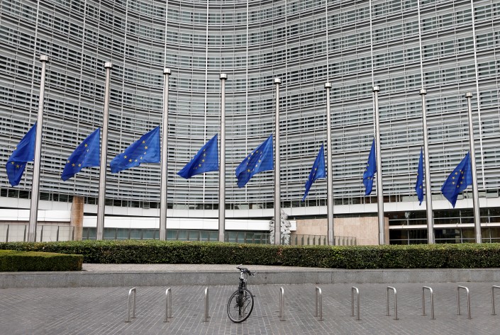 Приспущенные флаги у штаб-квартиры Европейского Союза в Брюсселе. Фото REUTERS/Francois Lenoir