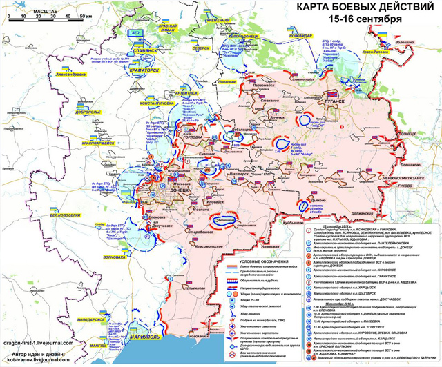 В свою очередь, Киев утверждает, что режим прекращения огня нарушают не украинские военные, а террористы, которые продолжают обстрелы позиций сил АТО. "На протяжении суток зафиксированы обстрелы в Донецкой области - в районе населенных пунктов Пески, Красногоровка, Марьинка, Александровка, Новомихайловка, Тоненькое, Малоорловка, Орлово-Ивановка, Нижняя Крынка, Центральный, Гранитное, Дебальцево, Донецкое, Староигнатовка. В Луганской области террористы обстреляли населенные пункты в районах Горное, Золотое, Ореховое, Чернухино, станица Луганская, Северодонецк и города Счастье", - сообщил представитель информационно-аналитического центра СНБО Андрей Лысенко, представляя сводку за 17 сентября.