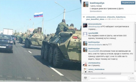 Фотографии военной техники, которая якобы направляется к границе с Украиной со стороны России, тем временем активно распространяются в социальных сетях: