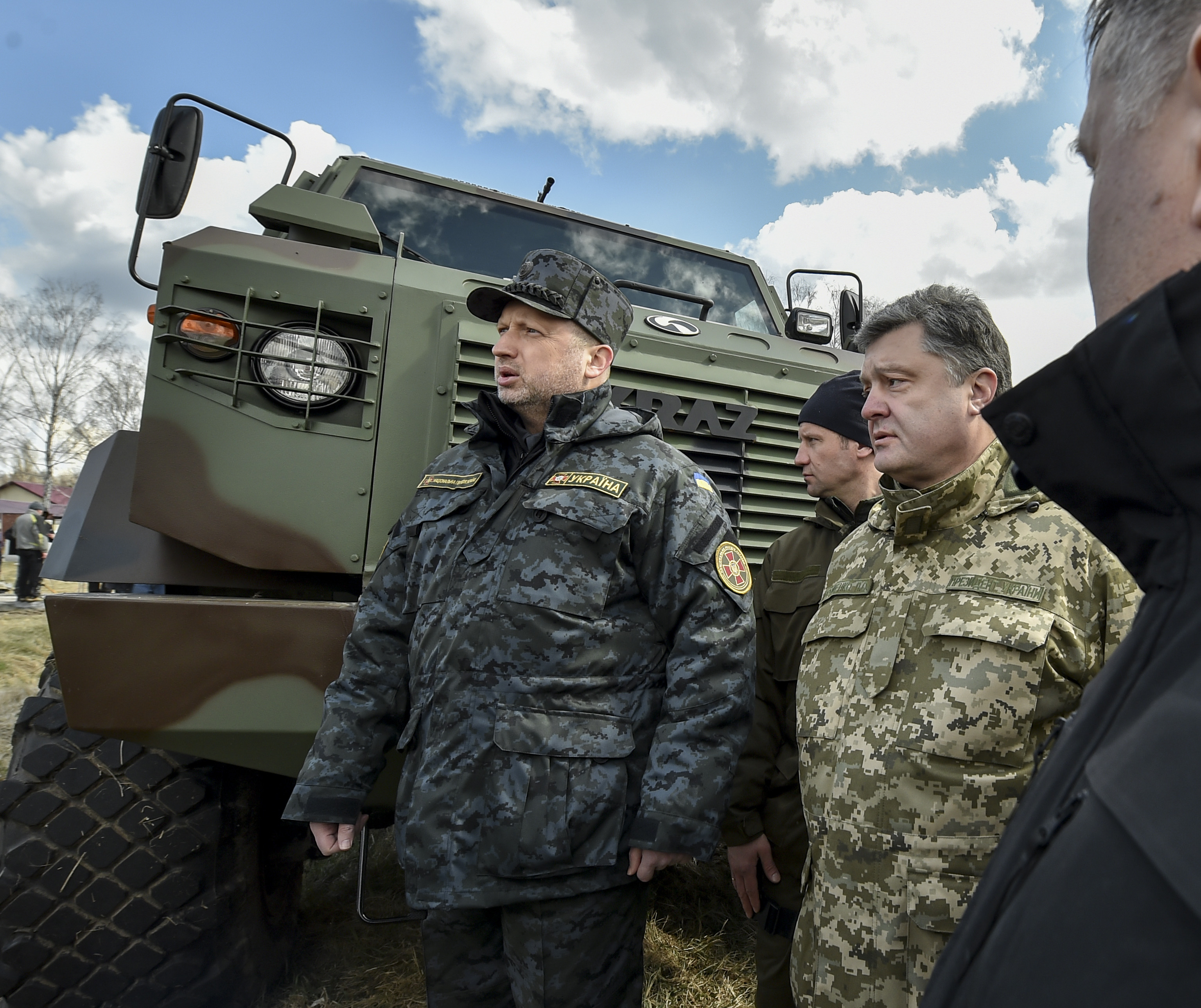 Напомним, 25 марта в аэропорту Борисполь Порошенко лично встретил самолет Военно-воздушных сил США с первой партией американских бронированных автомобилей HMMWV (Hummer). Автомобили поступили в соответствии с решением США о передаче Украине оборонных средств. Всего прибыли 10 автомобилей с усиленной броней, восемь из которых после оснащения вооружением украинского производства будут направлены в подразделения высокомобильных десантных войск, два - специальным подразделениям Службы безопасности Украины. Президент передал командирам подразделений сертификаты на указанные автомобили. В общем США планируют поставить 230 автомобилей HMMWV, из них 30 - с усиленной броней. Ожидается, что еще 200 автомобилей прибудут в течение 45 дней.