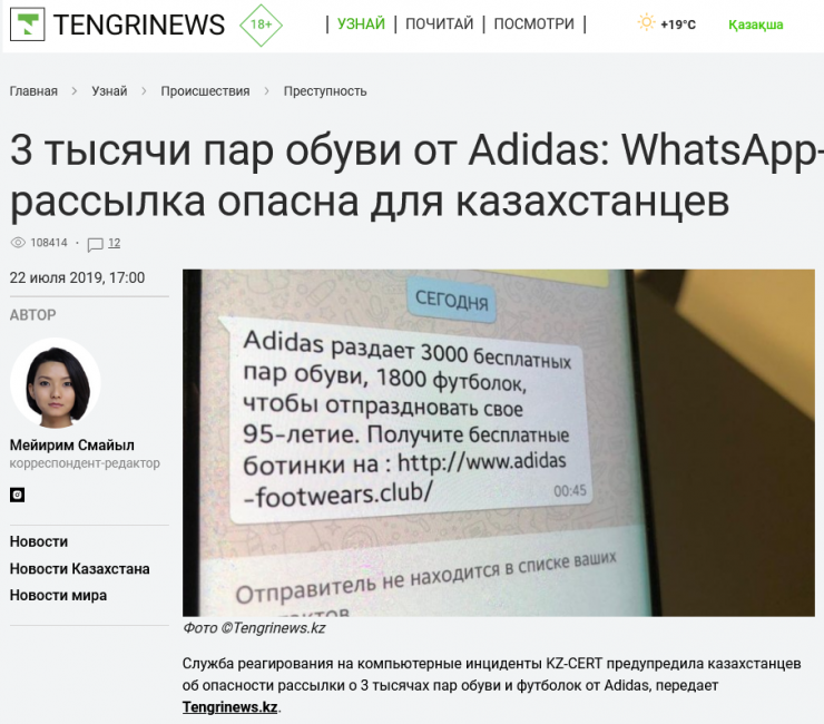 Одним из самых популярных видов мошенничества остается фишинг (англ. phishing от fishing - "рыбная ловля", "выуживание"). На крючок сейчас можно попасть абсолютно везде: в социальных сетях, на сайтах объявлений, почтовых сервисах, через СМС-рассылку и даже в WhatsApp. Как правило, мошенники привлекают своих жертв невысокой ценой, быстрым предоставлением товара, бесплатной раздачей дорогих устройств и даже кроссовок.