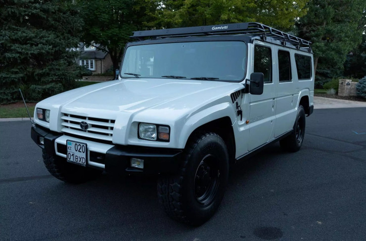 Toyota Mega Cruiser - большой рамный внедорожник, созданный для японской армии и спецслужб. Автомобиль выпускался в период с 1995 по 2001 год для внутреннего рынка, и только 150 вездеходов были предназначены для частных лиц. Особенность экземпляра из Казахстана - левое расположение руля. Для американцев Mega Cruiser - большая редкость, ведь из-за особенностей законодательства в США без ограничений можно импортировать только машины старше 25 лет.