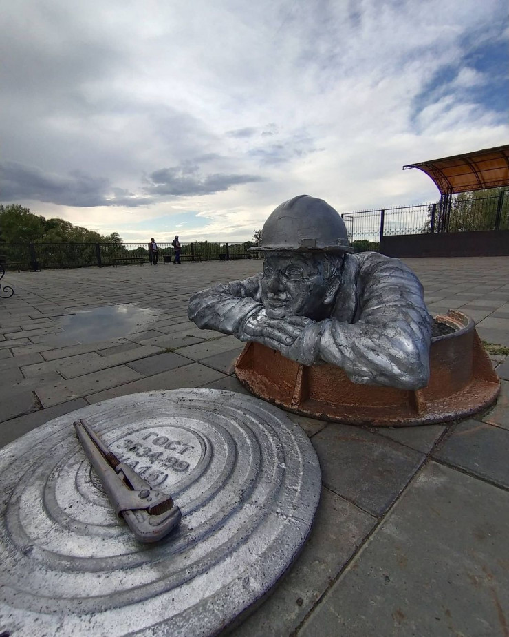 В том же году на речной площади появился памятник сантехнику. Чугунное изваяние отлили по фото павлодарского сантехника Сергея Тычкова, который 40 лет отдал рабочей профессии и участвовал в прокладке почти всей канализационной системы Павлодара.