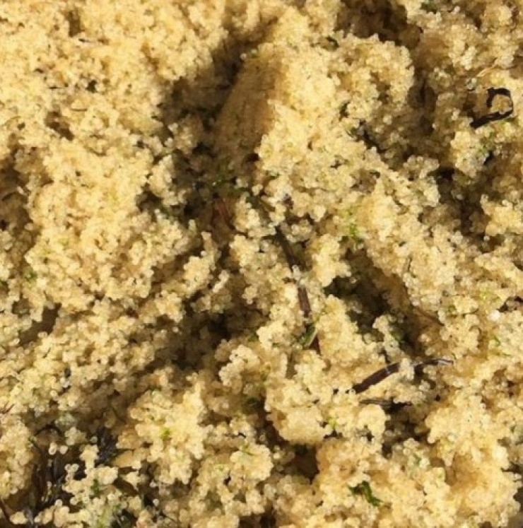 "Тихоокеанская сельдь сахалино-хоккайдского стада продолжает удивлять сахалинцев.  На этот раз своей икрой. На берегу залива Анива, в районе дачного поселка Нечаевка Корсаковского района, штормом выбросило на берег огромное количество икры, которую косяки сельди ранее отметали в прибрежной зоне", - написал Дмитрий Лисицын.