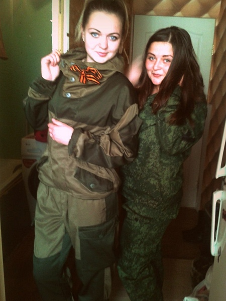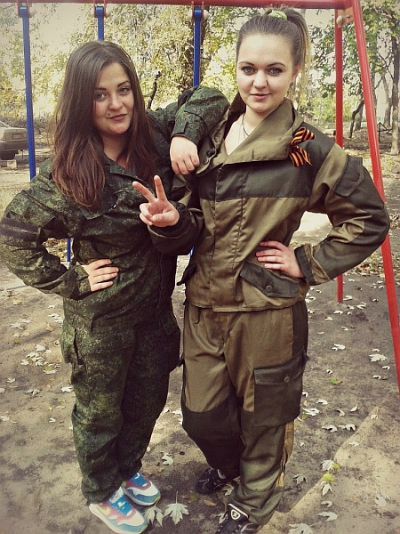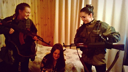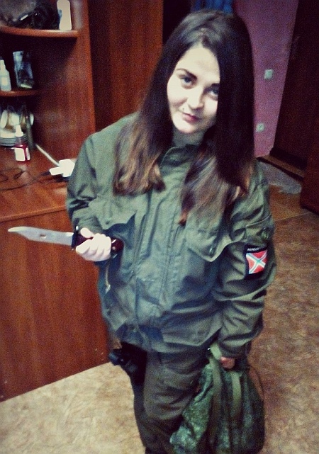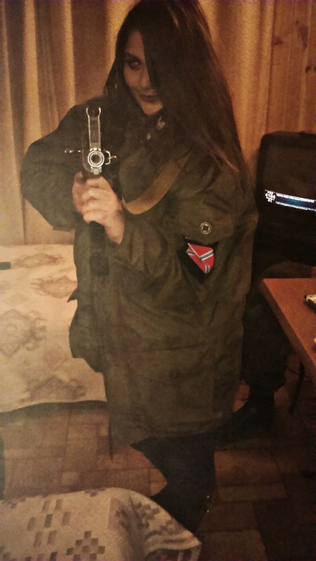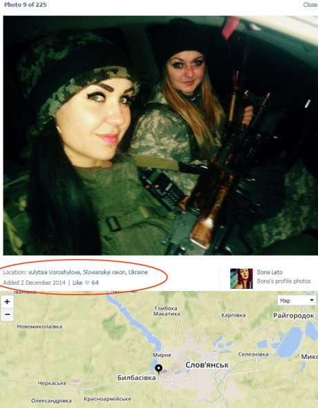 На одной из своих странице она также опубликовала фото, где она вместе с другой "коллегой" под ником Ilona Leto с оружием находятся в Славянске. Фото датировано декабрем 2014 года.