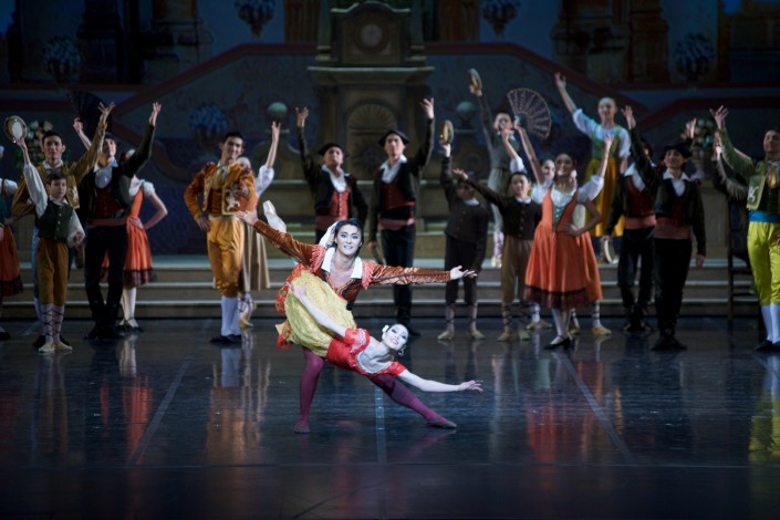 Партию юной беззаботной Китри исполнит заслуженный деятель Казахстана Гаухар Усина, ее возлюбленного Базиля представит Арман Уразов. В роли рыцаря печального образа Дон Кихота Ламанчского, готового на любые подвиги и благородные поступки, - Жанибек Иманкулов, преданный оруженосец Санчо Панса - Бостан Кожабеков. В партии главного тореадора Эспады дебютирует Олжас Тарланов. Уличная танцовщица - Анастасия Заклинская, Повелительница дриад - Асель Шайкенова, Цветочницы - Асель Кусаинова, Мольдир Шакимова, Гамаш - Рахметулла Науанов, Лоренцо - Жанадил Бейсембиев, Амурчик - Гульзира Жантемир.