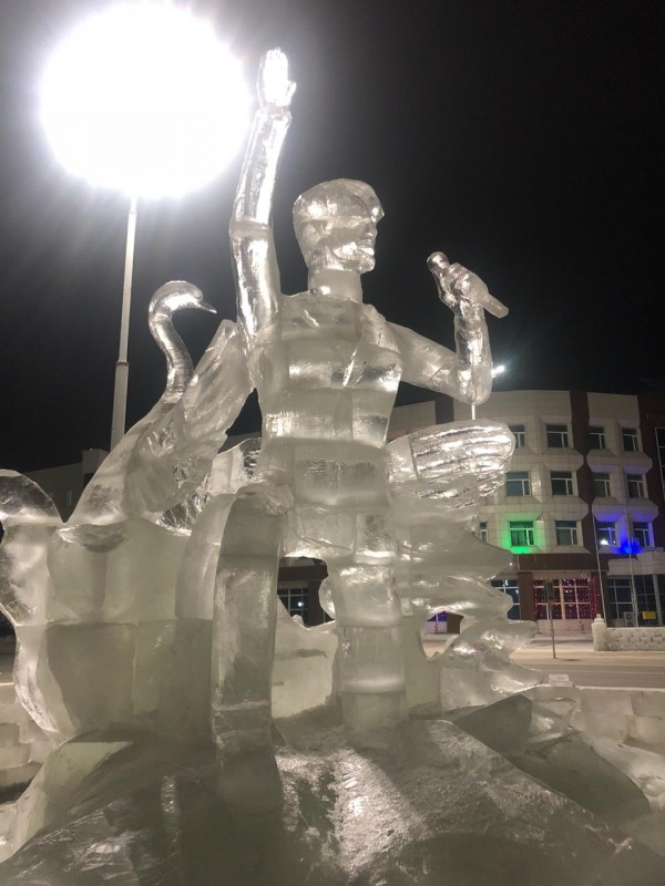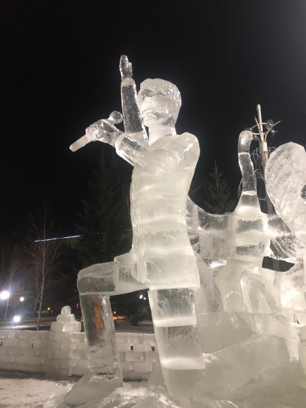 Жители Кокшетау сразу же решили, что в композиции изо льда изображен казахстанский певец Димаш Кудайберген. Однако, по словам автора скульптуры, это не так.