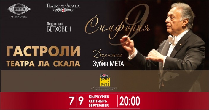 На сцене театра "Астана Опера" легендарный миланский театр Ла Скала представит жителям и гостям столицы оперу Джузеппе Верди "Фальстаф" (четыре спектакля - 1, 4, 6, 8 сентября 2017 года) и мировой шедевр - 9 симфонию Бетховена (7, 9 сентября 2017 года). За дирижерским пультом симфонического оркестра театра Ла Скала будет стоять один из самых прославленных музыкантов планеты - Зубин Мета.