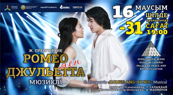 Министерство культуры и спорта осуществляет свой проект, в рамках которого в течение всего периода EXPO во Дворце мира и согласия проходят мюзиклы. Легендарную историю любви Ромео и Джульетты дарят жителям и гостям столицы актеры театра "Астана Мюзикл"10 августа состоится очередная премьера отечественного мюзикла "Астана".