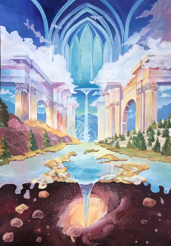 А Данияр Кдыров нарисовал весну в Нур-Султане будущего. Но центральное место на его рисунке заняли образы детей.
