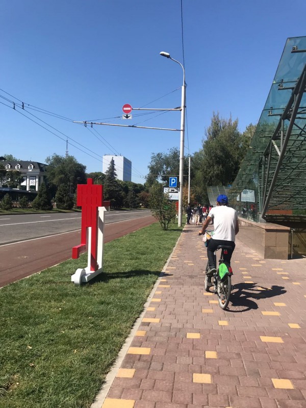 "Красные человечки" на самокатах появились возле метро Алматы © almatydc.kz