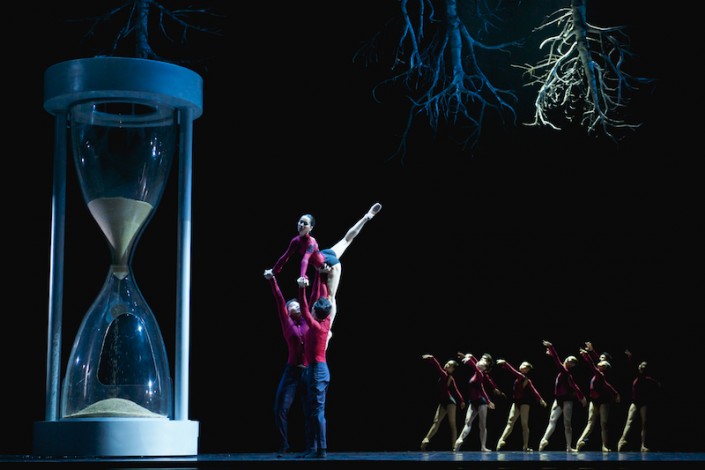 Прекрасная хореография, музыка и третья важная составляющая этого балета – сценография. Шесть деревьев, висящих в перевернутом виде, на черном фоне всего пространства сцены создавали загадочную картину. У каждой детали было свое предназначение. Огромные песочные часы, расположившиеся в левом углу сцены, полные в начале спектакля, опустошились в конце.  На удивление публике желтые листья со смертью главного героя опали. За эти чудеса отвечал сценограф Виктор Караре, воплотивший в жизнь эскизы Раймондо Ребека.