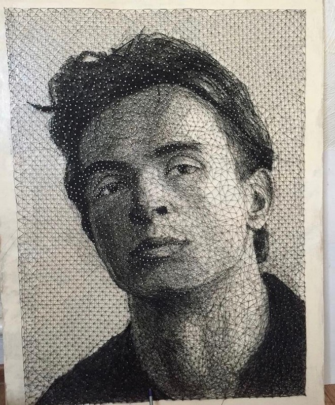 "Сначала я выбираю фото, с которого буду писать портрет. Для меня важно, чтобы оно рассказывало что-то о характере человека, а не было просто безликим. Потом делаю на фанере рисунок, прорисовываю линии карандашом. А уже потом забиваю гвозди и натягиваю нити. Это самый трудный этап, так как итог работы зависит от того, в какую сторону я буду крутить нитки, какой они будут длины и так далее. Нужно точь-в-точь повторить контуры. В некоторых местах нити натягиваются в несколько слоев - получается своего рода заштриховка. Если что-то не получается, нужно все распускать и начинать заново", - говорит художник.