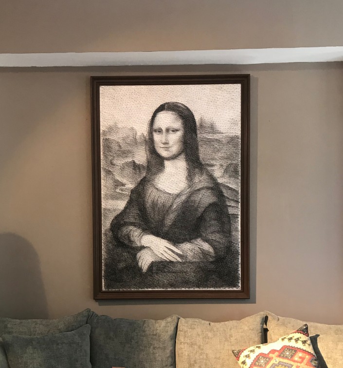 "Впервые я увидел такие работы в интернете и сразу заинтересовался. Начал искать информацию, оказалось, что в нашей стране из гвоздей и ниток делают только простые работы - сердечки, абстрактные фигуры. А я решил сделать что-то более сложное. Сразу начал с портретов и пейзажей", - рассказывает Рамазан.