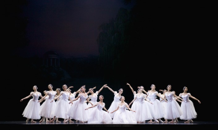 В первом отделении вниманию публики предложили романтический балет "Шопениана", поражающий художественной гармонией, редкостной музыкальностью и богатством танцевального рисунка. Чистота линий буквально завораживала взгляды зрителей. Артисты создавали разные фигуры: одни были похожи на цветы, другие же - на геометрические узоры. На сцене царил мир грез поэта, вокруг которого будто порхали воздушные балерины. Приглушенный свет с голубым оттенком придавал спектаклю еще большую романтичность.