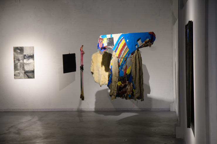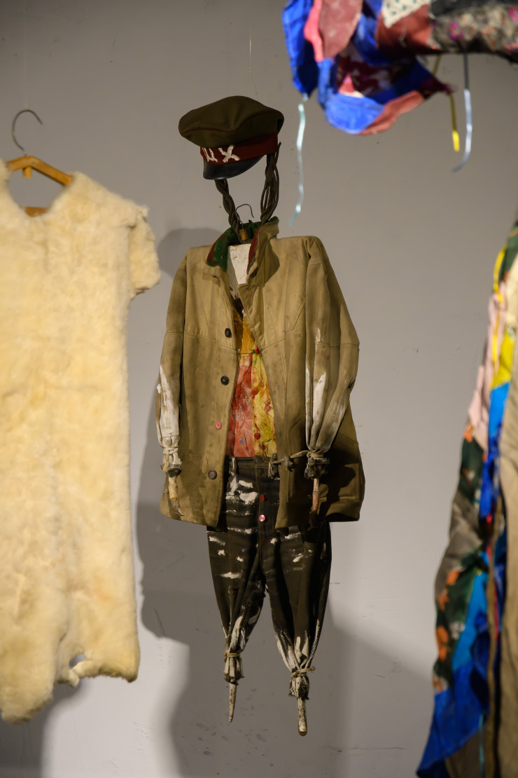 На выставке представлена документация и несколько оригинальных объектов из проекта "Шкура художника" мэтра современного казахстанского искусства Рустама Хальфина.