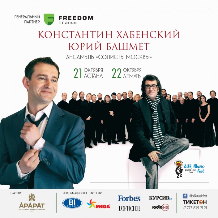 Silk Music Fest порадует всех ценителей музыки особенным культурным событием. 21 октября на сцене Дворца Мира и Согласия в Астане, а 22 октября на сцене Дворца Республики в Алматы будет представлен литературно-музыкальный "эксперимент" прославленных актера, дирижера и камерного ансамбля.