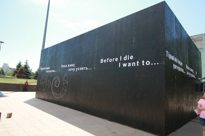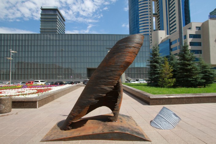 "Художник Каиржан Токишев делал перерыв в своей карьере, но мы рады, что благодаря фестивалю он вернулся в строй с такой замечательной работой. Это работа о противодействии встречному ветру. Несмотря на то, что она сделана из тяжелого железа, тонкие элементы, полоски дают нам воздушность, она очень хорошо отображает потоки ветка", - сказала Малиновская.