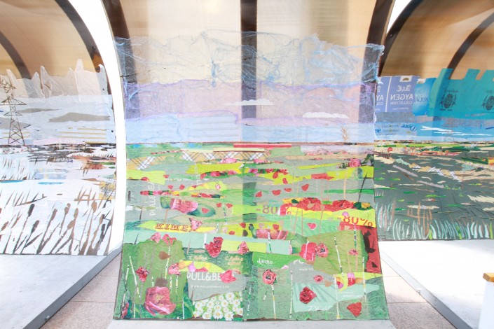 Гульмарал Татибаева в своем творении изобразила из халатов архитектуру астанинского "Хан-шатыра". Также арт-объект напоминай казахский женский головной убор - саукеле.