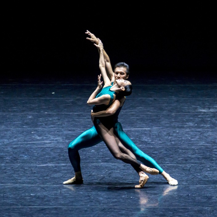 Театр "Астана Балет" представил на концерте два отрывка из современных балетов. In the middle somewhat elevated Уильяма Форсайта – это уже классика современного танца, но подвластна эта "технология импровизации" не всем, не всякая труппа может похвастаться наличием в репертуаре этого несомненного шедевра современного танца. Ведущие солисты театра Айнур Абильгазина и Фархад Буриев танцуют этот спектакль с первых дней его появления в репертуарной афише и каждый раз, как в омут, окунаются в атмосферу сиюминутной импровизации, мгновенных реакций и отваги. Каждый раз получается по-разному. Публику эта хореография завораживает, несмотря на полное отсутствие сюжета, зал будто замер и тут же взорвался громом аплодисментов.