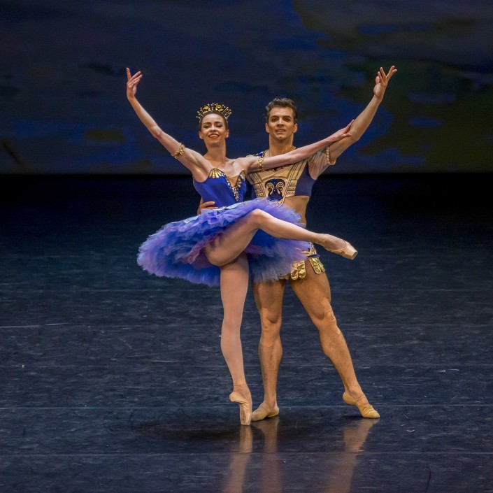 Классический блок представляли па-де-де из балетов "Жизель", "Лебединое озеро", "Корсар" и "Дон Кихот", "Классическое па-де-де" Обера, адажио из балета Фокина "Шехерезада" и па-де-де из спектакля "Дочь Фараона" в постановке Пьера Лакотта.