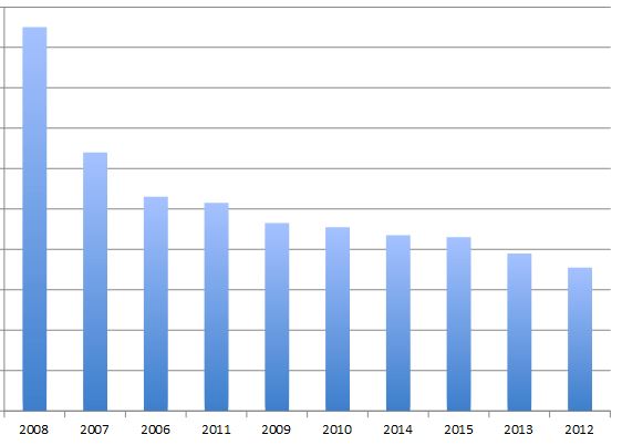 Если смотреть индекс потребительских цен год к году, то 2015 год стоит на восьмом месте, но здесь сказалась низкая инфляция первых восьми месяцев года.