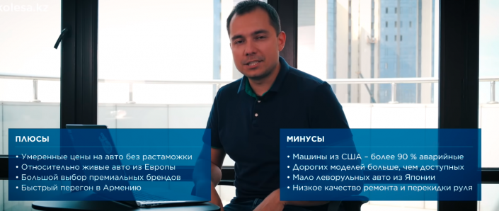 "Грузия является хабом на пути импорта авто. Цены здесь ниже, чем в Армении. Но Грузия не входит в Таможенный союз. Значит если машина будет здесь растаможена и вы решите перегнать ее в Казахстан, то придется растаможить ее еще и там. Поэтому вот рабочая схема: покупаете машину не растаможеннную, перегоняете в Армению. Там ставите на учет и потом уже завозите авто в Казахстан", - советует журналист.