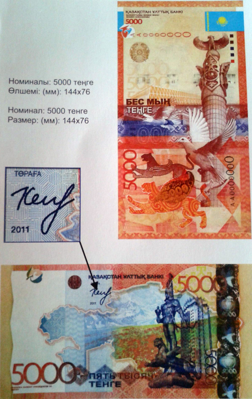Ранее в различных казахстанских СМИ появились сведения о том, что подпись Кайрата Келимбетова была нанесена на купюры 2011 года выпуска. Однако в Нацбанке опровергли эту информацию.