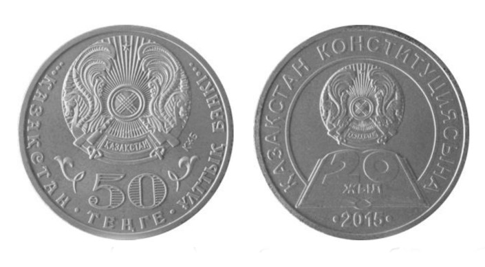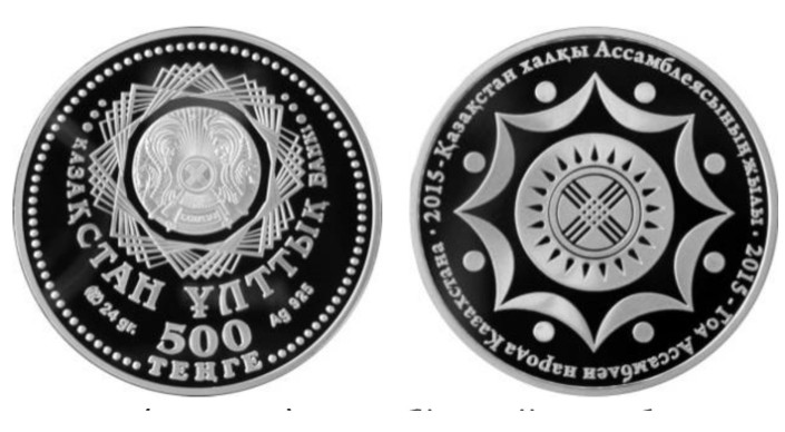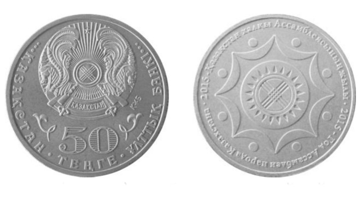 Из серии юбилейных монет выпущены: "20 лет Конституции Казахстана", "2015 - Год Ассамблеи народа Казахстана" номинальной стоимостью 50 тенге и юбилейные серебряные монеты "2015 - Год Ассамблеи народа Казахстана" номинальной стоимостью 500 тенге.