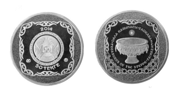 Памятные монеты выполнены из сплава нейзильбер: "Тайказан" из серии монет "Сокровища степи", "Буран" из серии монет "Космос", "Кызылорда" и "Орал" из серии монет "Города Казахстана" номинальной стоимостью 50 тенге.