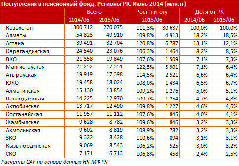 В тройку лидеров по росту объема пенсионных отчислений за год вошла и Атырауская область, где этот показатель вырос на 14,5 процента и достиг 19,9 миллиарда тенге. На четвертом месте оказалась Западно-Казахстанская область, где объем пенсионных взносов за год вырос на 10,6 процента и достиг 9,3 миллиарда тенге.