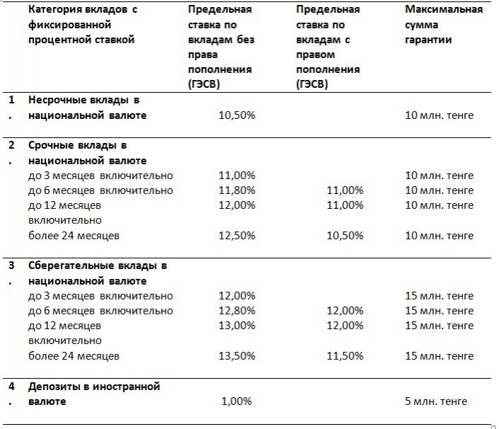 С 1 октября 2018 года в Казахстане изменились гарантии по депозитам. Раньше гарантированная сумма была ограничена 10 миллионами тенге. Теперь в зависимости от срока и возможности досрочного снятия денег вкладчики получат разный уровень защиты своих денег. Максимальная сумма гарантии повысилась до 15 миллионов тенге.