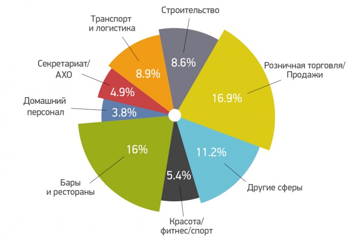 По данным аналитиков, больше всего предложений о работе можно найти в категориях "Розничная торговля/Продажи" (16,9 процента от общего количества вакансий), "Бары/Рестораны" (16 процентов), "Транспорт и логистика" (8,9 процента) и "Строительство" (11,6 процента). Эксперты отмечают, что среди наиболее распространенных позиций, на которые следует обратить внимание студентам и выпускникам - это менеджер по продажам, кассир-продавец, торговый представитель, официант и бармен. Минимальная оплата для этих вакансий колеблется от 200 до 2 000 тенге за рабочую смену, часы определяются индивидуально в каждом отдельном случае.