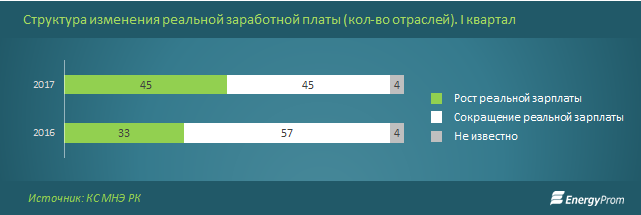 Предприятия РК усиливают внимание к своим работникам на фоне восстановления привычных уровней деловой активности. В текущем году рост реальных заработных плат почувствовали в 48 процентах отраслей экономики (45 отраслей) против 35 процентов годом ранее (33 отрасли), сообщают аналитики Energyprom.kz.
