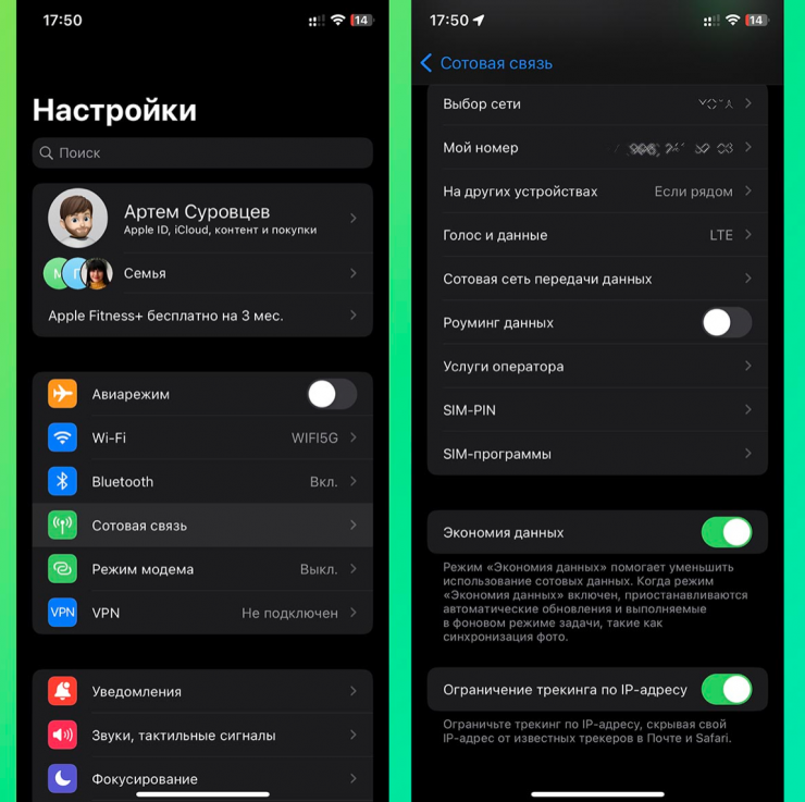 - Как настроить: перейдите в "Настройки" – "Сотовая связь", выберите SIM-карту, которая используется для мобильного интернета и активируйте тумблер "Экономия данных".