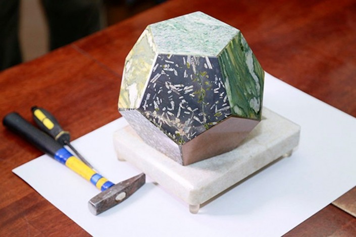 Бұл жәдігер тау жыныстарынан жасалған. Капсула ішіндегі мәтінде былай деп жазылған: