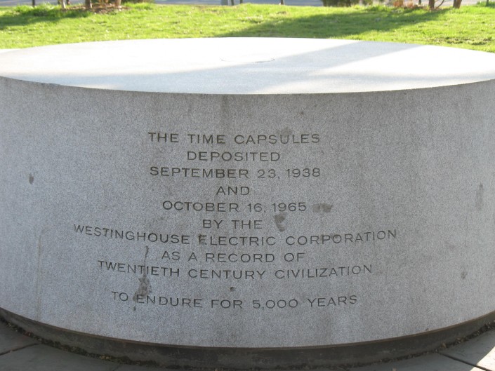 Оның ішіне жіп, қуыршақ, есеп-қисап кітабы, дән салынған қорап және микроскоп, мәтін жазылған парақ, мұнда Альберт Эйнштейннің хаты салынған еді. Сонымен қатар 1965 жылы оның жанына тағы бір уақыт капсуласы орнатылған. Сондай-ақ жәдігерлер 15 метр тереңдікке орналастырылған еді. Осыдан кейін әлем бойынша уақыт капсуласын орнату көбейді. Керек десеңіз уақыт капсуласын зерттейтін халықаралық ұйым пайда болған. Негізі кейбір уақыт капсулаларының орнатылуының өзі қызығушылық тудырады. Мысалы 2015 жылы Ресейдің Төтенше жағдайлар министрлігінің қызметкерлері уақыт капсуласын Байкал көлінің ең терең жеріне түсірген. Яғни 1637 метр тереңдікке. Операция барысында сүңгуірлер 40 метр тереңдіктен капсуланы төменге қарай жіберген. Жәдігердің ішіндегі заттар жасырын қалмады. Оның ішіндегі жазылған хатта екінші дүниежүзілік соғыстың 70 жылдығы туралы айтылған.