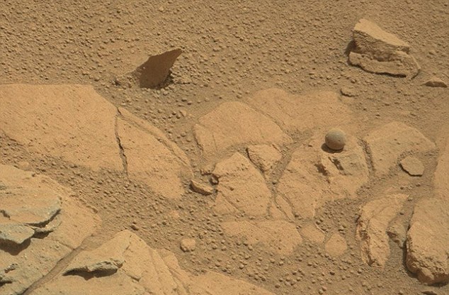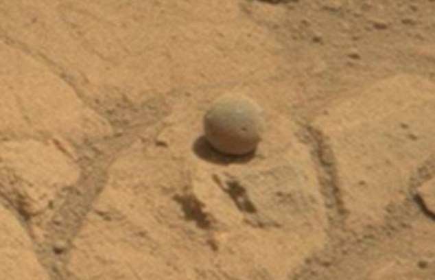 Как считают специалисты из Лаборатории реактивного движения NASA в Пасадене, таинственный шар - это обыкновенный камень. Его форма может указывать на существование воды в древнем прошлом Марса. Диаметр каменного шара, предположительно, составляет один сантиметр.