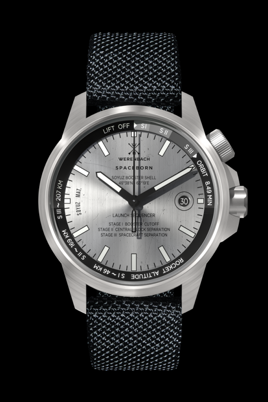 Как отмечается, для изготовления "космических" часов использовался материал с ракеты "Союз", которая была запущена 19 октября 2016 года с космодрома Байконур. Ракета состоит из трех ступеней, первая из которых, выполнив свою функцию, отделяется на высоте в 50 километров и падает в казахстанской степи. Именно металлу, составляющему первую ступень ракеты, судьба уготовила вторую жизнь в виде произведения часового искусства.